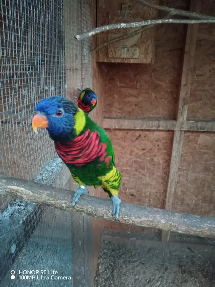 Lori žlutohřbetý, garulus flavopaliatus 3:3 chovné páry r. 2018 Lori černé atra atra 1:1 r. 2017