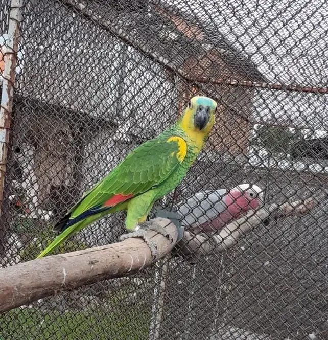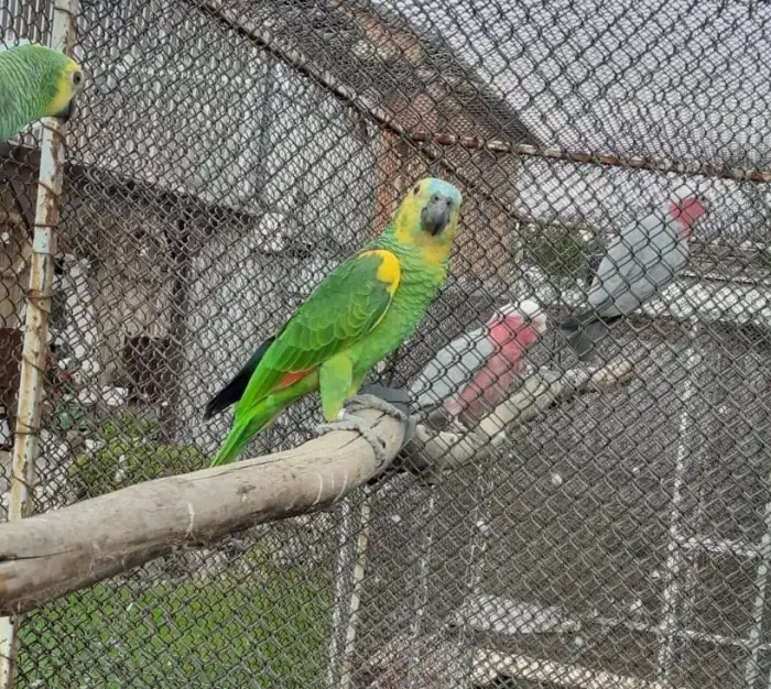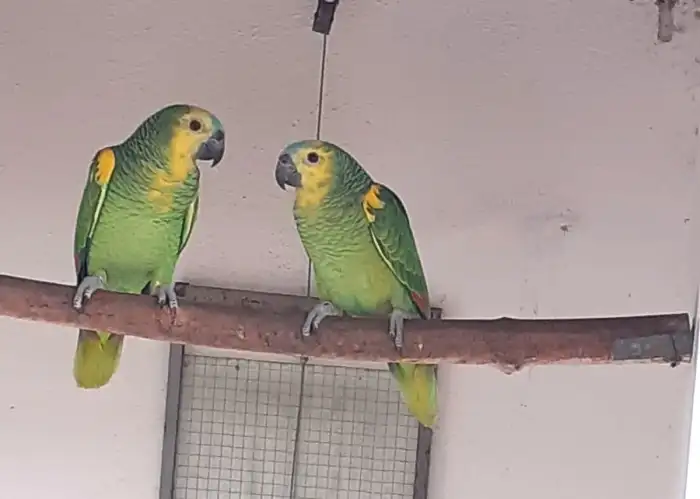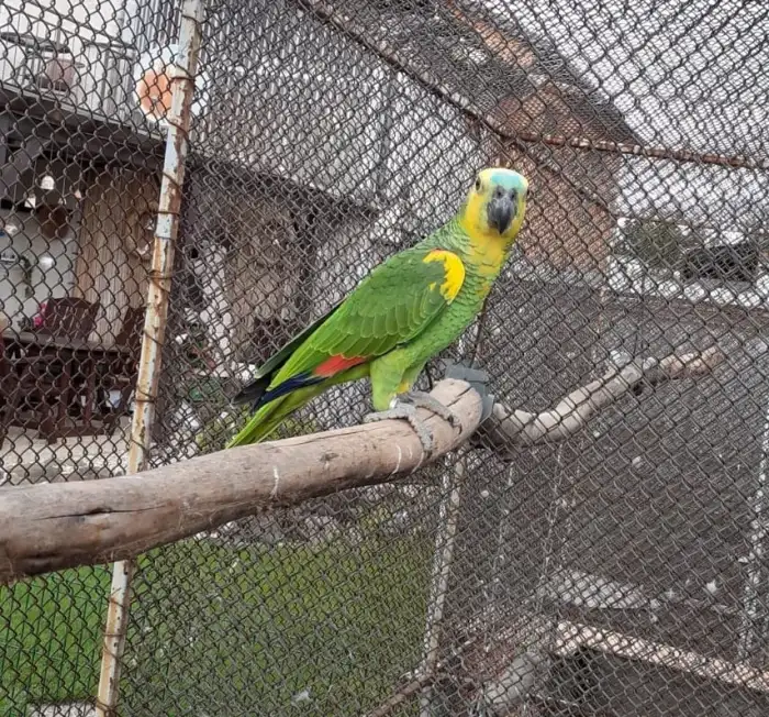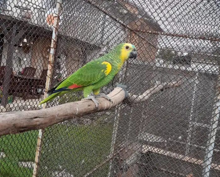 Prodám Amazoňana modročelého jižního - Prodám samce, letošní odchov, poslední se čtyř mláďat, odchov pod rodiči, DNA, bez vady, pevný kroužek, venkovní voliéra.