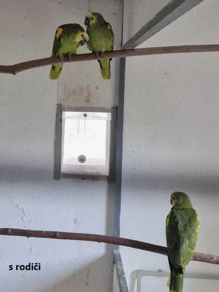 Prodám Amazoňana modročelého jižního - Letošní odchov pod rodiči z venkovní voliery, test DNA, pevný kroužek