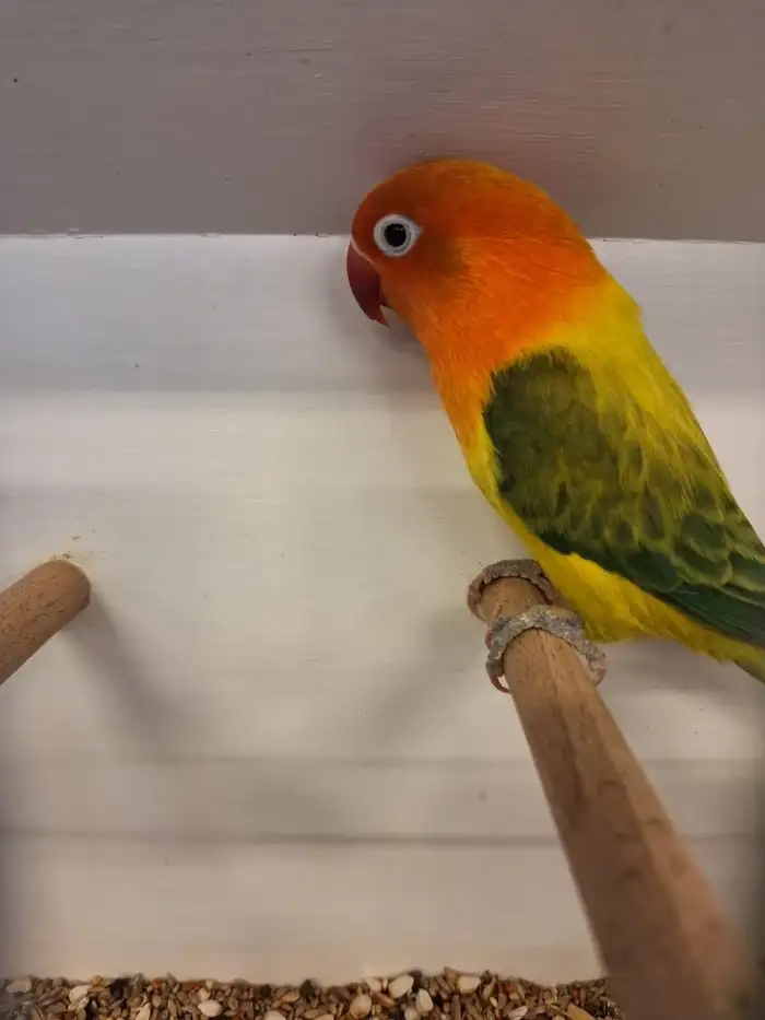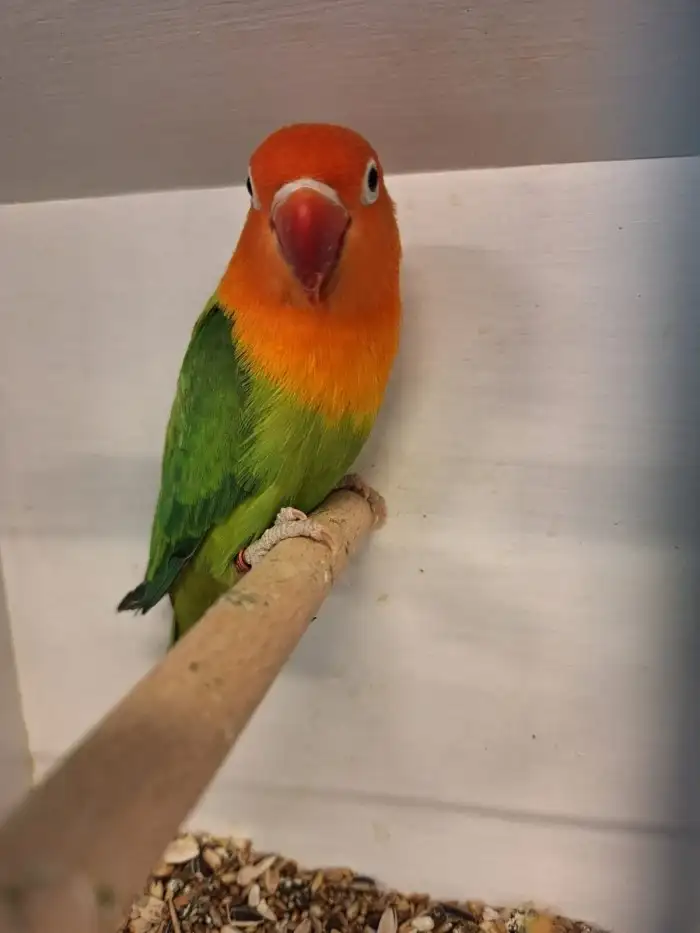 Prodám Agapornise Fišerova - Prodám 2 agapornise fisheri bez určení pohlaví. Věk 3 měsíce, s pevným kroužkem. Vhodné k ochočení či do chovu. Pouze volat.