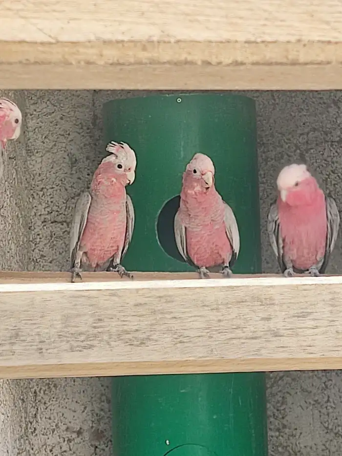 Prodám Kakadu růžového - Prodám 0,2 – 4/2025 kakadu růžový lutino. Odchov pod rodiči, DNA. Oba rodiče dovoz z Nizozemí. Tel-603894366.