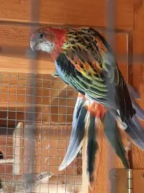 Prodám Roselu pestrou nádhernou - Dobrý den, prodám letošní kroužkované rosely pestré nádherné z venkovní voliéry. Cena 900 Kč za kus. Tel.605 017 128.