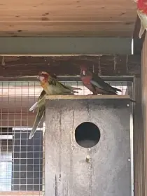 Daruji Roselu pestrou - Daruji páreček Rosel pestrých do dobrých rukou, věk okolo 10let, chovaní ve voliéře, ochočení moc nejsou, ale po navyknutí se nechají trochu dotýkat na bříšku. Odchovali již 2...