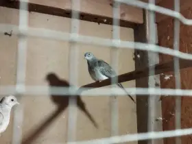 Prodám Holoubka diamantového - Dobrý den, nabízím k prodeji poslední letošní Holoubky diamantové straky. Začínají přepeřovat (strakatět). Stáří dva měsíce, plně samostatní od tří párů. Bes určení poh...