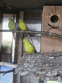 Prodám letošní mláďata aymar. Sourozenci. Samice s kroužkem, samec bez kroužku. Tyrkys.