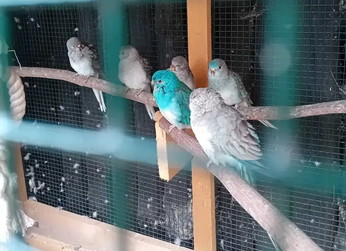 Papoušci zpěvaví chovaní v zajetí se chovají převážně v klecích a voliérách. Vnitřní voliéru můžeme zhotovit z různých materiálů. V minulosti (do jist...