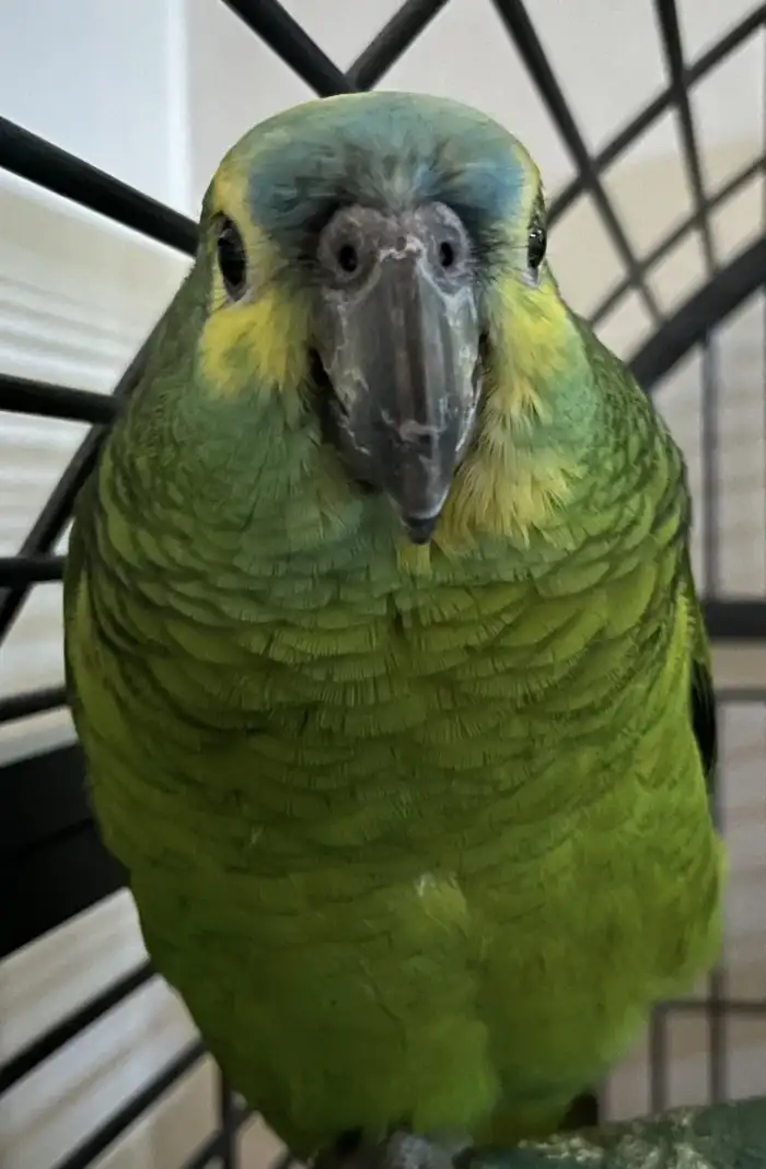 Sháním Amazoňana modročelého jižního - Koupím samici amazoňana modročelého jižního xanthopteryx. Může být letošní, lépe starší již do chovu. Na fotu můj chovný samec. Cena nerozhoduje. Mírný hendikep...