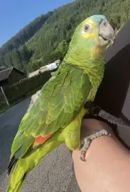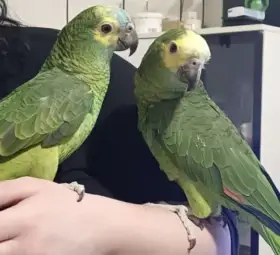 Prodám Amazoňana modročelého - Prodám poslední nepříbuzný pár Amazoňanů modročelých 2025 . Vychováni rodiči , kvalitní genetická linie . Na fotce v předu .