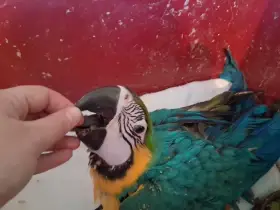 Prodám Aru araraunu - Nabízím samici s handicapem (oškubané peří), rok 2011. Zvyklá v páru, 2x plná snůška. Cena dohodou.