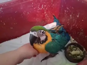Prodám Aru araraunu - Prodám pětiměsíčního samečka a samičku Ary ararauny odchované plně pod rodiči. Vhodné k ochočení na domácího mazlíčka. Nyní s námi v domě, zvykají si na normální chod domácnosti....