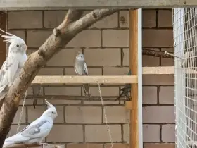 Prodám Korelu chocholatou - Belohlavý samec nar. 2018 s kroužkem, samice straka přírodní nar. 2020 bez kroužku, nikdy neměli mladé. Klec - celková výška 145,5 cm, šířka 54 cm, hloubka 54 cm. Součá...