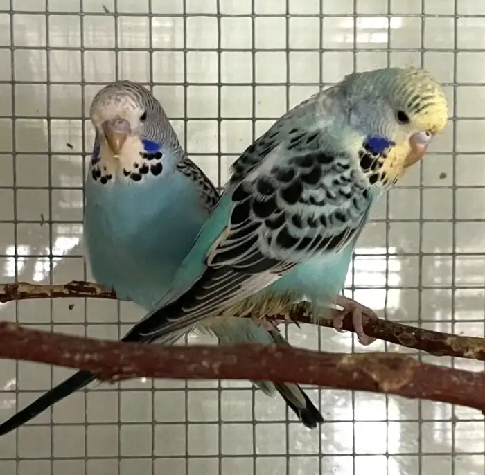 Prodám Andulku vlnkovanou - Prodam chovny par modrych Texasek,krouzek 24,letos 3x mlade,,venkovni voliera.600kc za par.