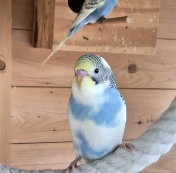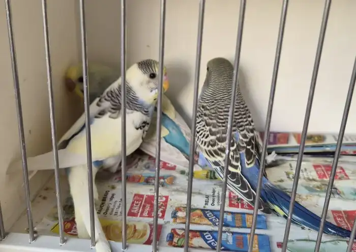 Prodám Andulku vlnkovanou - Prodam chovny par modrych Texasek,krouzek 24,letos 3x mlade,,venkovni voliera.600kc za par.