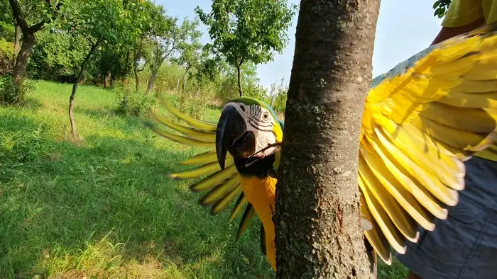 Prodám Aru araraunu - Prodám ručně dokrmenou samičku Ary ararauny, ochočená, zvyklá na ruku. Narozena červenec 2025.