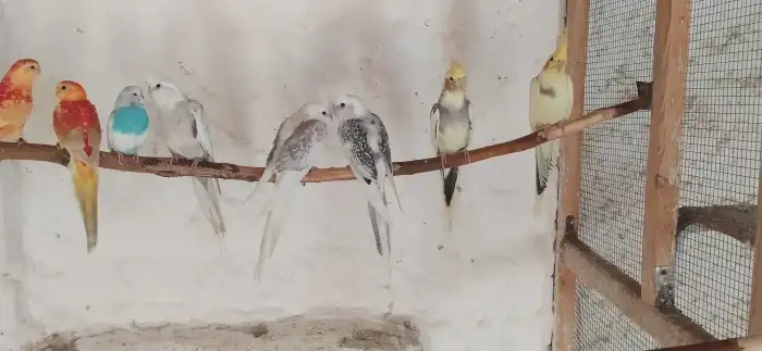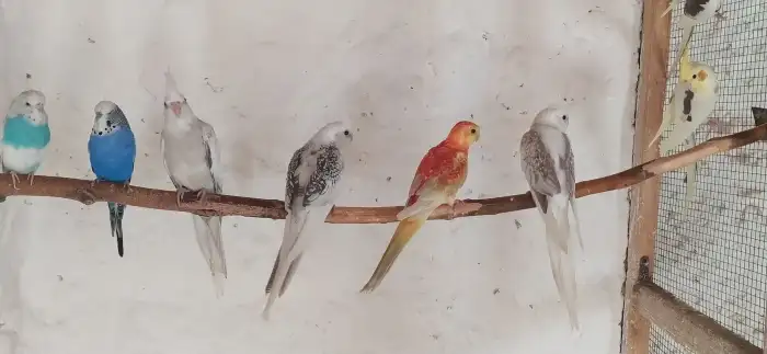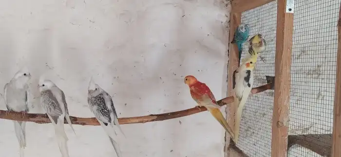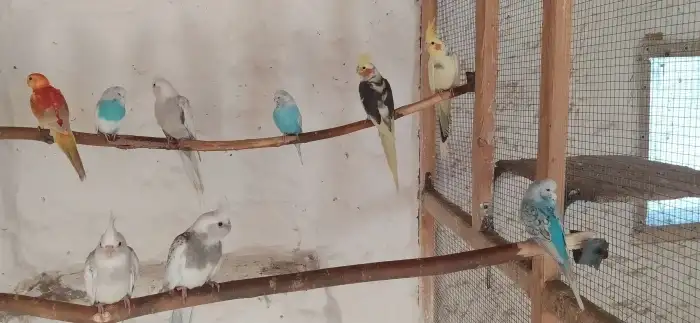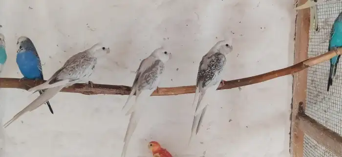 Prodám Alexandra malého - Prodám Alexandry malé dvě albína a dva modré Alexandry, vše mám kroužkované, pak taky letošní rosely pestré a andulky, cena dohodou.