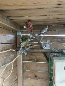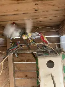 Prodám Roselu penant - Prodám letošní penanty 0.1 žlutý pastel štěp. na 2f ( oranžový) , 1.0 pomerančová skořicová straka štěp. na obrácená straka, a 1.0 obrácená pomerančová straka rok 24 (chovný). M...