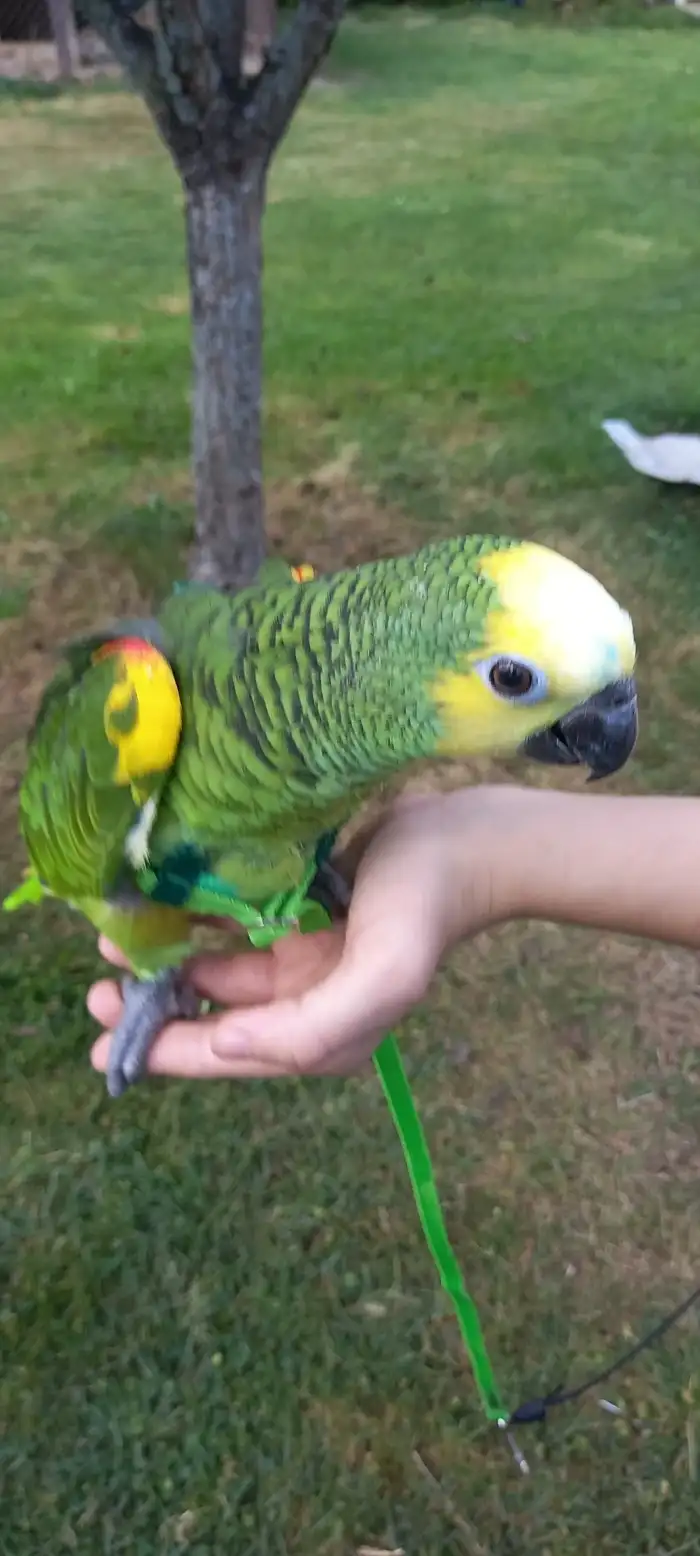 Prodám Amazoňana modročelého - Samec rok 23 dna pevný kroužek odchov pod rodiči ze žluté linie
