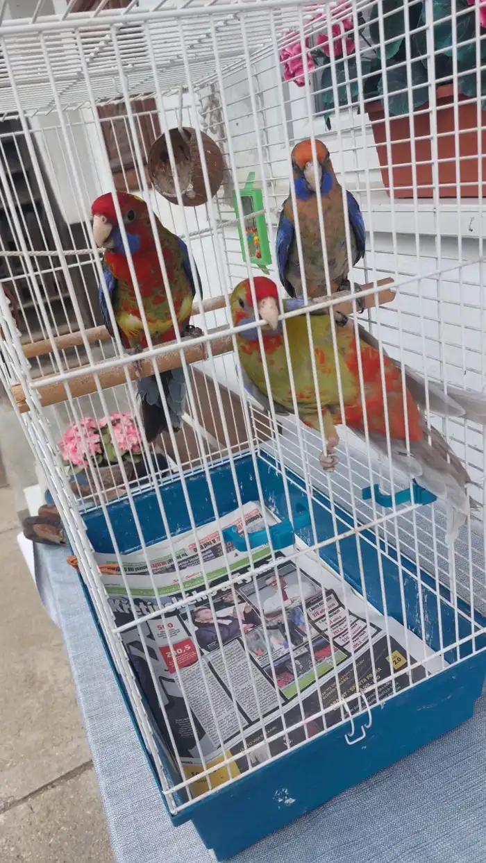 Prodám Roselu penant - Prodám letošní penanty 0.1 žlutý pastel štěp. na 2f ( oranžový) , 1.0 pomerančová skořicová straka štěp. na obrácená straka, a 1.0 obrácená pomerančová straka rok 24 (chovný). M...
