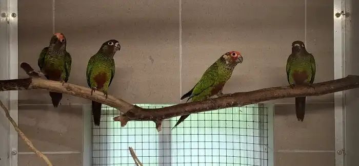 Prodám Pyruru červenobřichého - Prodám pyrura červenobřichá 0,1/25,s DNA a kroužkem.Je odchovaná pod rodiči již samostatná.Vhodná na ochočení i do chovu.Odběr ve frýdlantu nad Ostravicí.