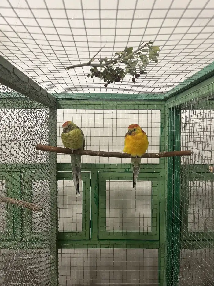 Papoušci zpěvaví chovaní v zajetí se chovají převážně v klecích a voliérách. Vnitřní voliéru můžeme zhotovit z různých materiálů. V minulosti (do jist...