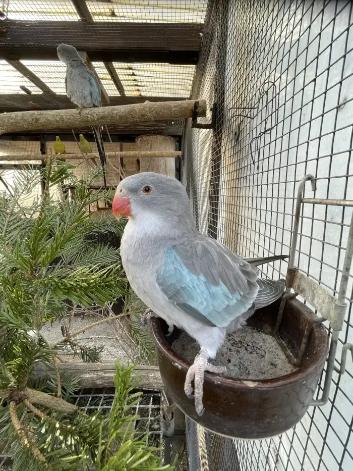 Prodám Papouška Alexandřina lutino - Prodám samce alexandřin princeska bílé barvy. Pohlaví určeno DNA . Kroužek 25 cena 3000 kč/ kus