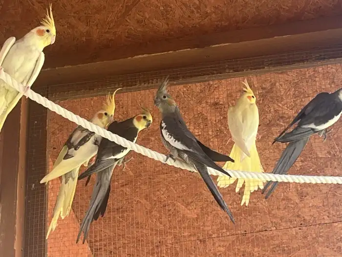 Prodám Korelu chocholatou - Prodáme 3 mláďata korely chocholaté narozené koncem července 2025 (24.7.2025) v budce v bytě. Šedý je samec, dvě perlové jsou samice. Mláďata byla krmena rodiči i dokrmován...