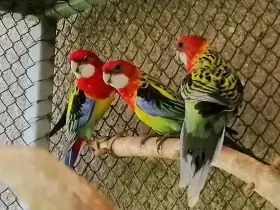 Prodám Roselu pestrou - 1.0 rozela pestrá opalín/štep. do golden gold kr.22 + 0.1 rozela pestrá opalín golden gold kr.22 nepríbuzné, chovné,