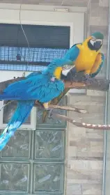 Prodám Aru araraunu - Prodám pětiměsíčního samečka a samičku Ary ararauny odchované plně pod rodiči. Vhodné k ochočení na domácího mazlíčka. Nyní s námi v domě, zvykají si na normální chod domácnosti....