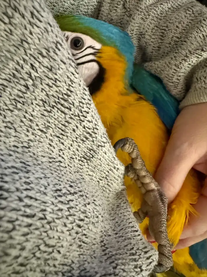 Prodám Aru araraunu - Prodám dva samce 2025. Odchováno pod rodiči ve venkovní voliéře.