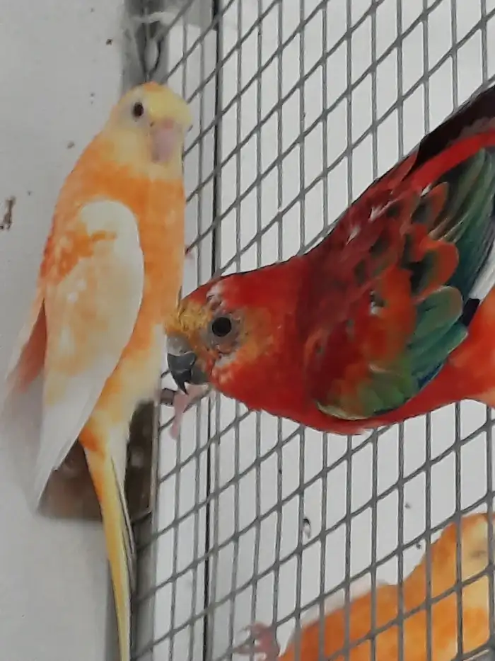 Prodám Papouška zpěvavého - Prodám 2,0 papoušek zpěvavý lutino oranž/rubino. Příbuzní, jedno hnízdo s DNA letošní kroužek.Na Poslední fotce jsou rodiče. Pouze volat 723 267 729