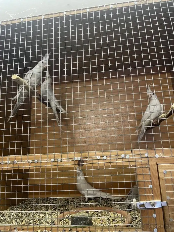 Prodám Korelu albino - Prodám pár- Korela chocholatá, samec lutino, samice, albín, stáří cca 3 roky, každý rok se páří, snůška cca 5 vajec, ale bohužel nic nevysedí, zřejmě neoplozená vejce, prodávám...