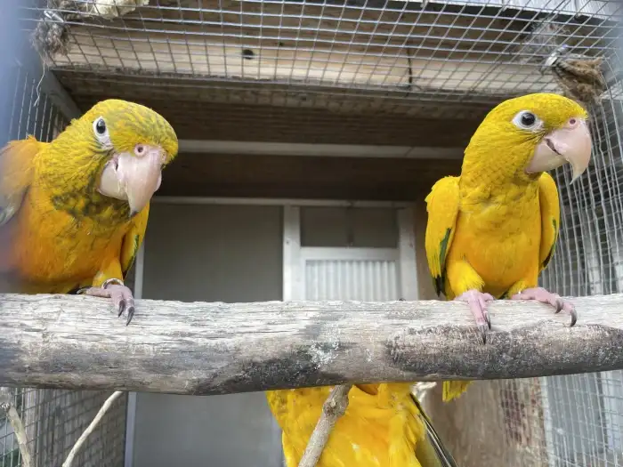 Prodám Aratingu žlutého - Predám tohtoročné mláďatá guaroba+staršie kusy r. 24,23.Cites povinné doklady+DNA, Pbfd. Len volať,+421908278429.