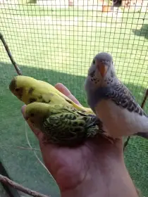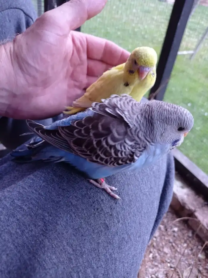 Daruji Andulku vlnkovanou - Nabízím 2 andulky, sourozence, vyklubaní v červnu 2025. Odchovaní v bytě, neochočení. Možno i zvlášť. Kontaktujte mě prosím přes whatsapp. 608 874 099