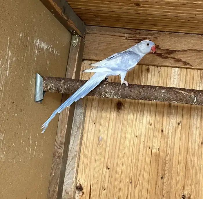 Prodám Alexandra malého - Nabízím letošní Lutino samici ( na foto s otcem)silná,kroužkovaná,ve 100% stavu,z prostorné venkovní voliéry s vytápěným zázemím.Tel : 775402207. Cena 1000,-