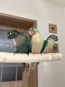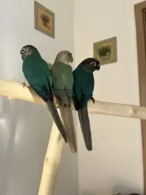 Prodám Pyruru zelenolícího - Nabízím papoušky 3x samec a 1x samička pyrura zelenolící vhodné k ochočení. Mláďata jsou kroužkovaná 2025, s certifikátem DNA Cena 1200.-/ks.Rozela 6 x pevný kroužek 2025...