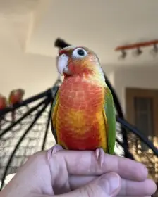 Prodám Pyruru zelenolícího - Nabízím k prodeji letošního ručně dokrmeného samečka v mutaci tyrkys a samičku v mutaci Violet tyrkys pineapple vhodné na domácí mazlíčky. Oba jsou kroužkovaní, s certifik...