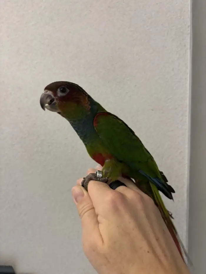 Predám ručne dokrmenú aru červenouchú samček 025. Testy DNA,PBDF. Povinné doklady cites.