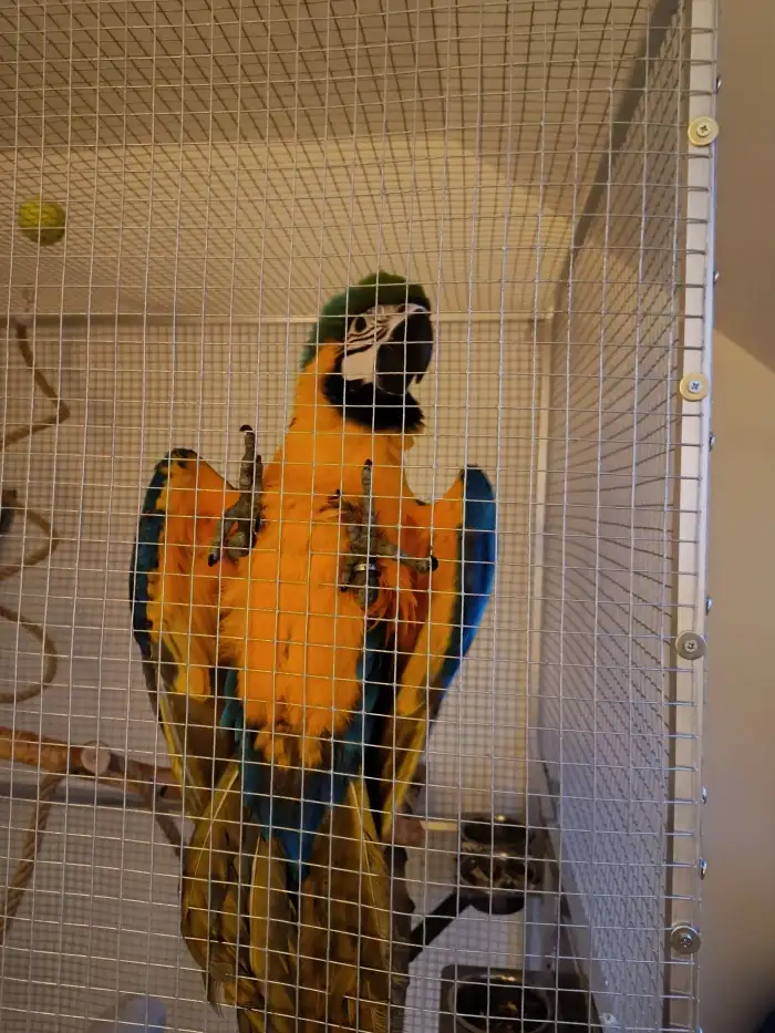 Prodám Aru araraunu - Prodám šestiměsíčního samečka a samičku Ary ararauny odchované plně pod rodiči. Vhodné k ochočení na domácího mazlíčka. Nyní s námi v domě, zvykají si na normální chod domácnosti...