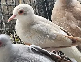 Prodám Holoubka diamantového - Dobrý den, nabízím k prodeji poslední letošní Holoubky diamantové straky. Začínají přepeřovat (strakatět). Stáří dva měsíce, plně samostatní od tří párů. Bes určení poh...