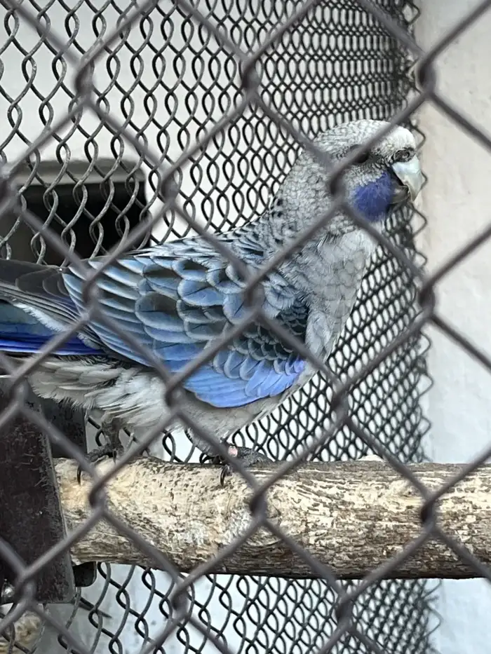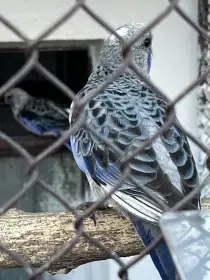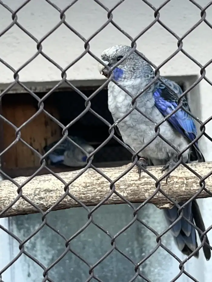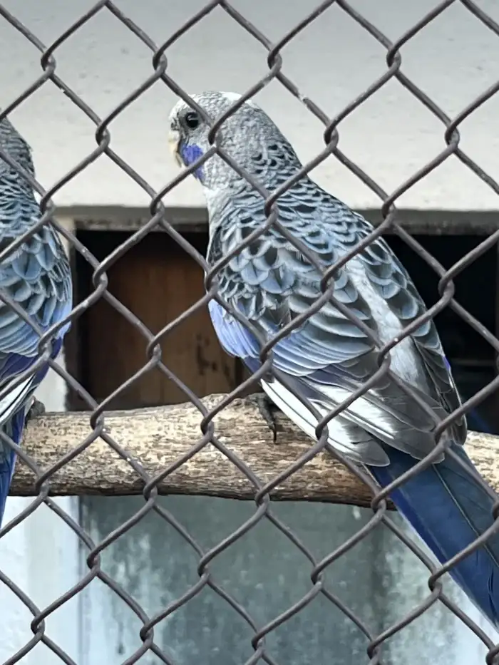Prodám Roselu penant - Prodám loňskou samičku modrého penanta. Ručně dokrmená, nebojí se, ale nemazlí se. Vhodná i do chovu. Pevný kroužek a test DNA.