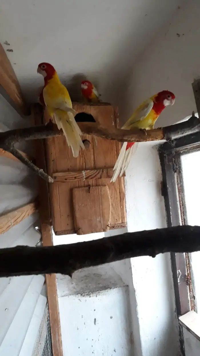 Prodám Roselu pestrou lutino - Prodám Roselu lutino, narození 2025. Cena 900 kč. Venkovní voliéra. + Rosela pestrá, narození 2025. Cena 500 kč. Venkovní voliéra.