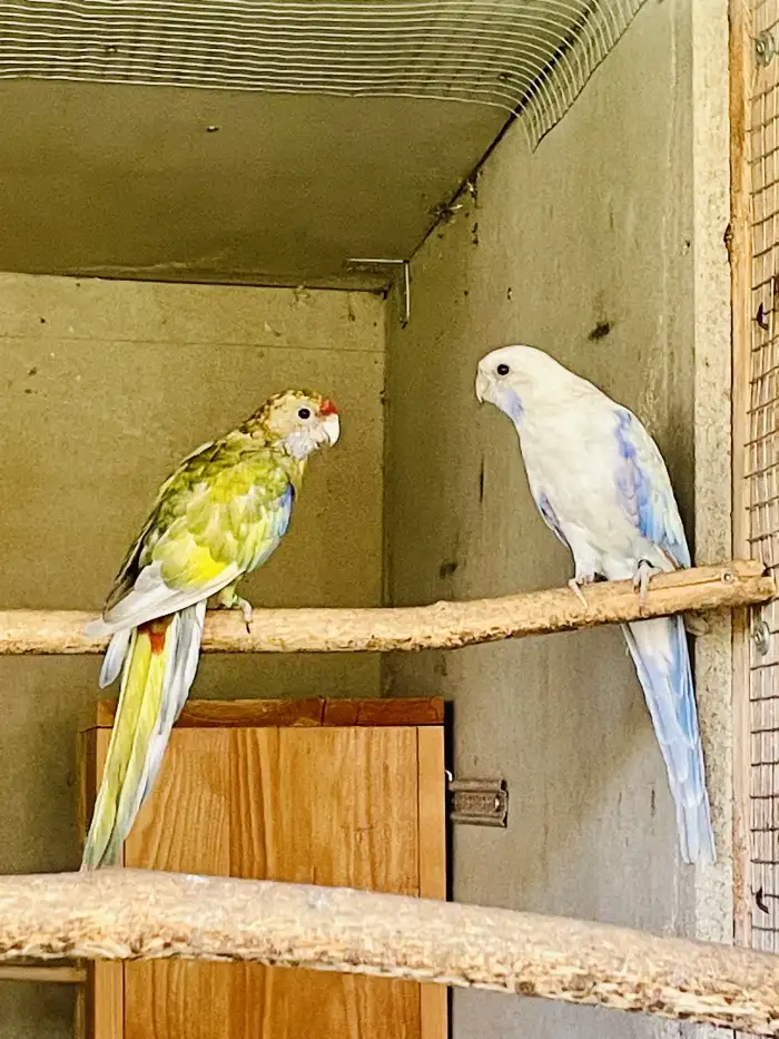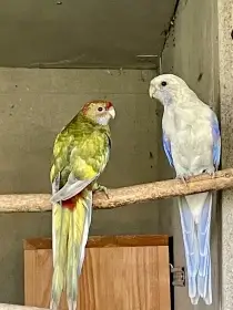 Prodám Arasari zeleného - Prodám 1,1 Loskuták posvátný střední forma ,nepříbuzný pár , pevný kroužek 2025, DNA. samec dovoz SRN , samice odchov ČR, 1,2 Eklektus různobarvy kroužek 2023,2024 , lze sest...