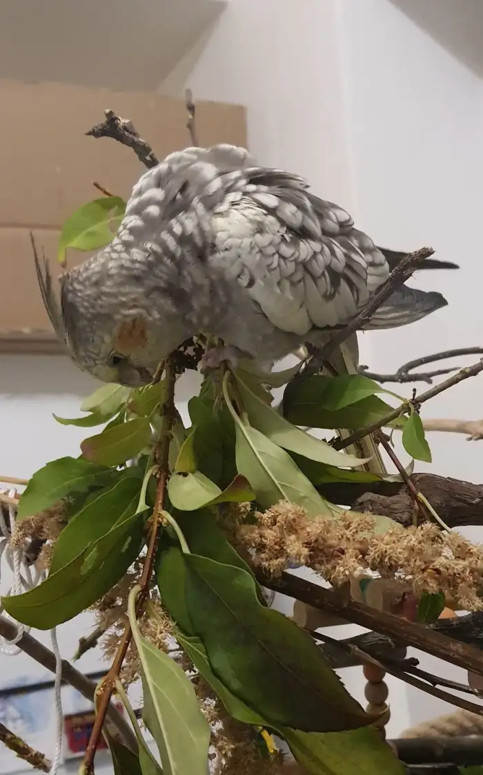 Prodám Korelu bělohlavou - 0,2 korela albino a korela bělohlavá perlová. 2025 bez kroužku. Z venkovní voliéry