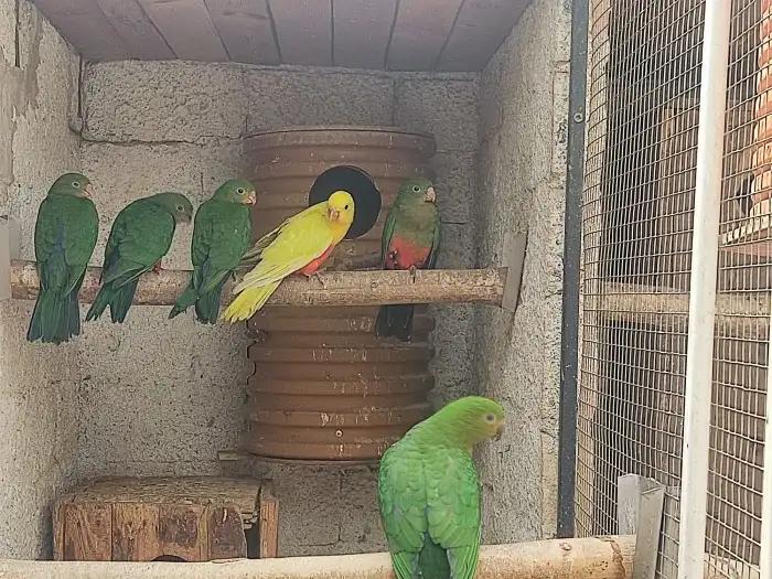 Prodám Papouška královského žlutého - Dobrý den, prodám letošní 2025 kroužkované, 1,1 a jeden štěpitelný 1,0(cena 6000) ,, s certifikátem o pohlaví, z velkých voliér, pouze kvalitní krmivo, celoroč...