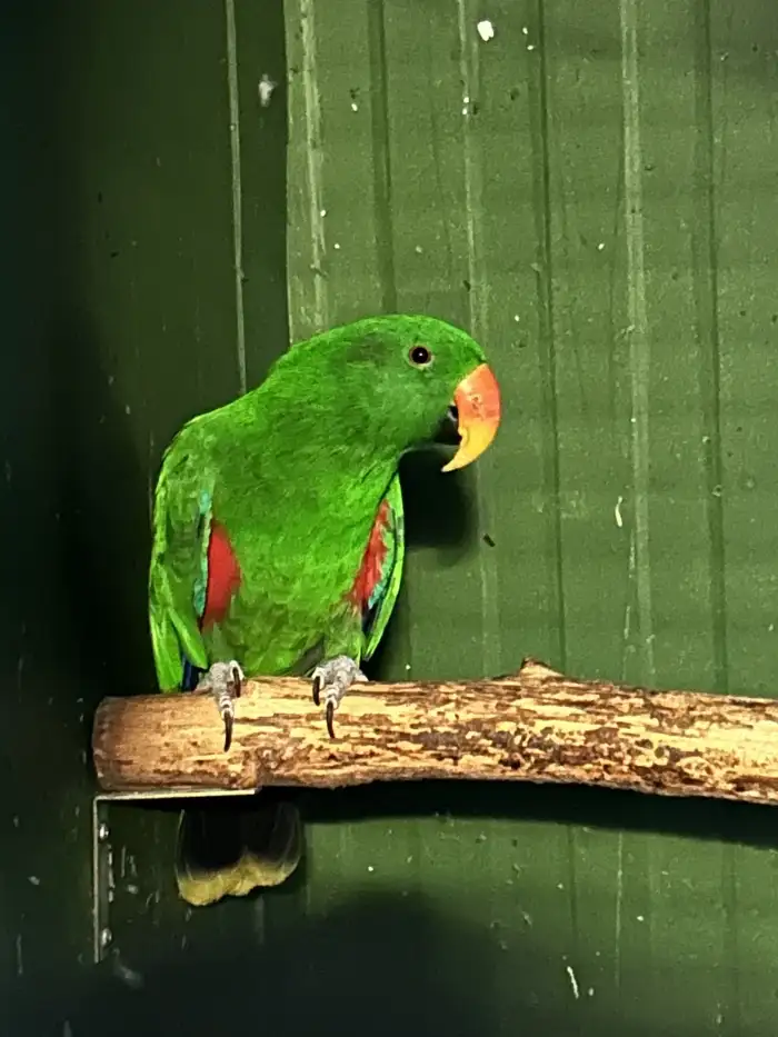 Prodám Eklekta polychlora - Rok narození 2025, odchov pod rodiči až na bidlo Cena za kus
