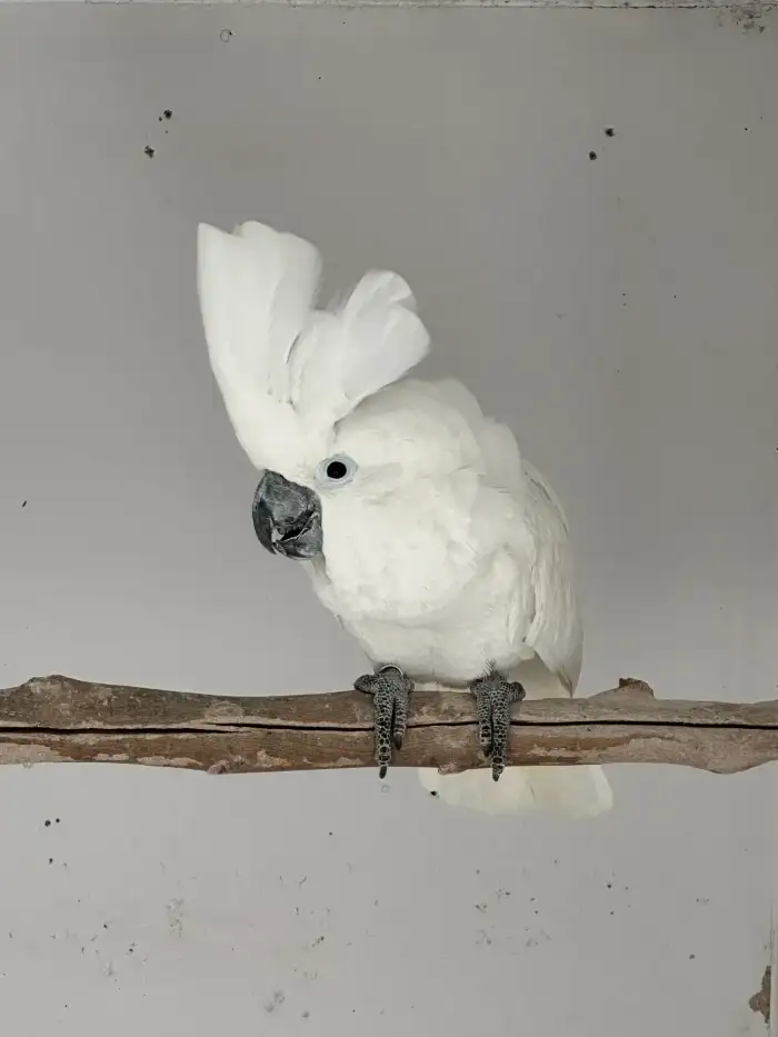 Prodám Kakadu bílého - Prodám 2 samice jedna je lehce škubla (po úmrtí majitele se začala škubat) druhá má střižený kroužek, testy DNA cena za škublou 40tis se střiženým kroužkem 45tis prosím pouze vo...
