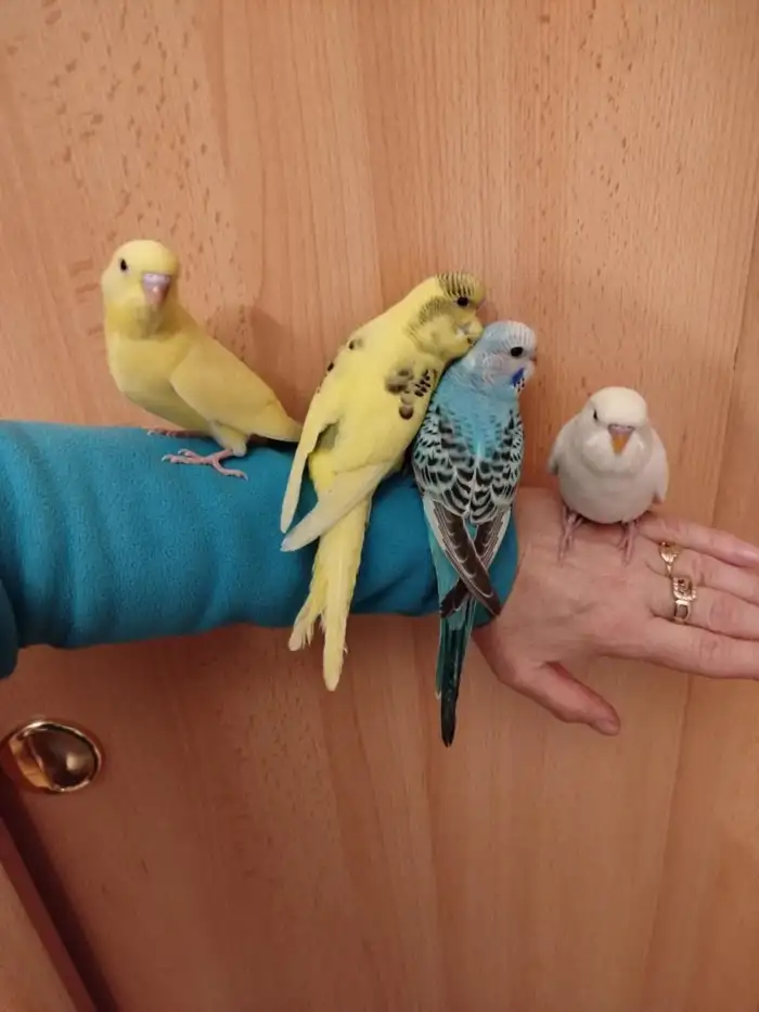 Prodám Andulku vlnkovanou - povezu do kroměříže 0,2 lutino samice rok 2025 unor kus 400Kč 0,1 fialova skořice rok 2024 kus 300Kč dalé zebry 1,2 rok 24 samice maji kr samec bohuzel ne nestihl j...