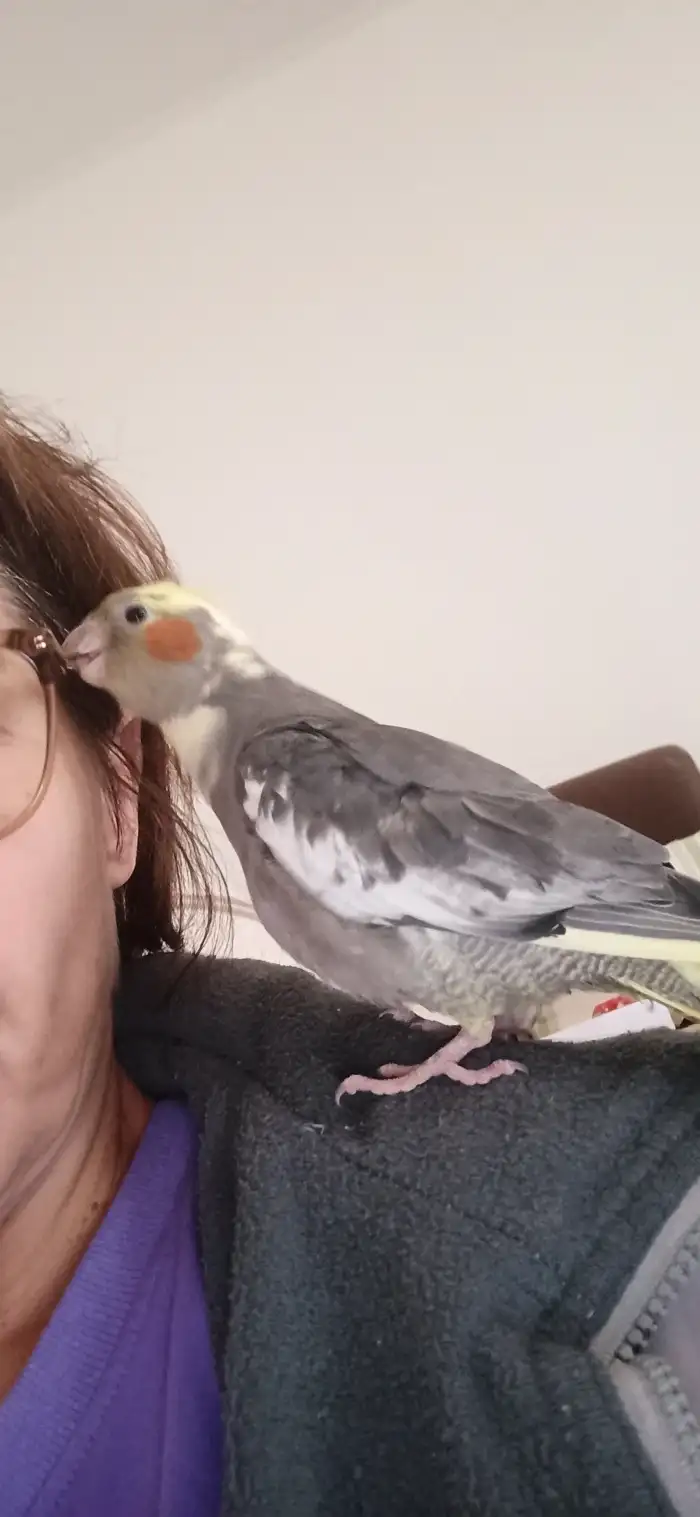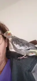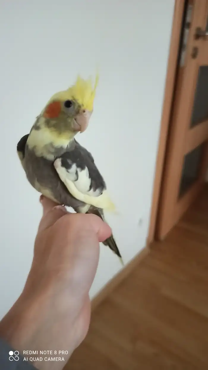 Prodám Korelu chocholatou - Dobrý den, prodám mládě korelky narozeno 3.10.2025. Rodiče samec lutino a samice perlová barevná mutace. Korelka je odchována v domácem prostředí zvyklá na lidi.