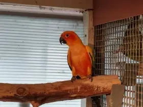 Prodám Aratinga slunečního - Prodám pár arating slunečních (samec + samice). Vzhledem ke složité životní situaci jsme nuceni prodat naše milované mazlíčky. Samice Dippi – vylíhnutá přibližně 09/20...