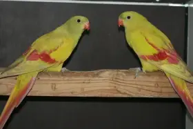Prodám Papouška nádherného - Prodám papoušky nádherný, chovnou samici+3 ks mladých.Důvod prodeje úmrtí samce.Cena za samici 500kč(pravidelný odchov). Cena za mladé 400kč za kus.